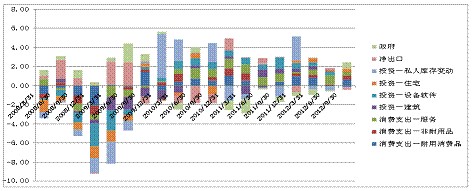 消费支出的增长有一些提速,但2%的增速也只能称得上温和。耐用品和非耐用品支出明显改善,但相当部分被低迷的服务支出所抵消。显示消费者在增加商品货物消费的同时压缩了服务消费,其所面临的压力仍然存在。住宅投资为增长贡献了0.3个百分点,连续六个季度正贡献,显示房屋市场延续复苏的趋势。房屋销售数据显示房屋市场供求继续改善。成屋销售环比下降了1.7%,年率475万套,看起来更像是8月份大幅上涨之后的调整。受困房屋销售占比回升2个百分点至24%,仍比年初时低了10个百分点左右。首次购房占比上升1个百分点,投资者占比维持在18%不变。新屋销售环比上升5.7%,年率为38.9万套,上一次超过这一水平还是2010年初首次购房优惠的时候。新屋和成屋销售维持着上升的趋势,虽然相对于危机后的跌幅,回升还显得有限,尤其是新屋。供给月数分别继续下降至4.5个月和5.9个月,更加接近均衡水平。此外,房屋价格继续上涨,营建商信心指数升至危机后新高,都显示房屋市场的复苏仍在稳定推进,但房屋市场对增长的贡献将会有限,难以成为复苏的主要动力。