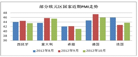 从上月公布的数据来看,欧元区国家经济基本面仍不见好转:PMI数据仍处于衰退区间,失业率继续攀升。但欧元区经济年内出现急剧恶化的可能性同样不大:西班牙上周公布的三季度GDP同比下降1.6%,好于市场1.7%的同比降幅预期,预期并不应对欧洲央行可能采取大胆或激进的措施报太大希望,一个类似SMP的冲销干预仍是最可能的选项。