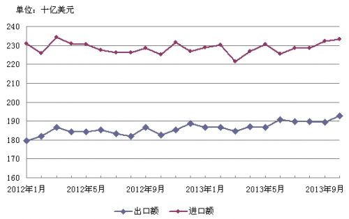 2012年和2013年1-10月美国进出口情况 资料来源:美国商务部
