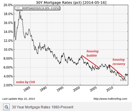 众所周知的是,抵押贷款利率不断下滑,按揭证券化,美联储(Fed)放松信贷政策,巨额的联邦住房和按揭补贴助长了2001-2007年破天荒的房市泡沫。