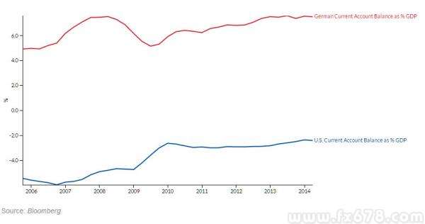 第三个对比的是经常帐数据。毫无疑问,赤字和盈余的对比一目了然,德国经济“再下一城”。