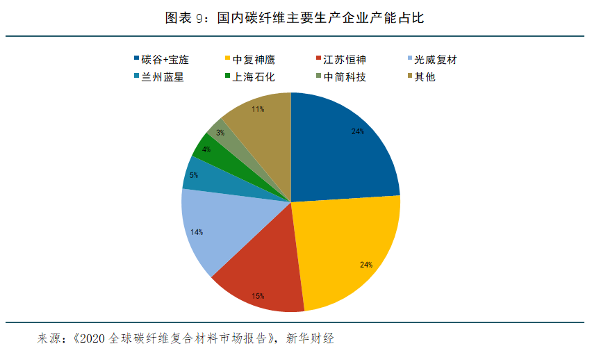 在政策大力扶持、国产化替代加速、下游需求快速增长等利好带动下,我国碳纤维行业处在快速发展时期,但由于技术和工艺水平相对落后,供给端处于紧张局面。这在航空航天领域高性能碳纤维上体现得尤为明显。