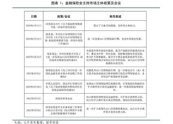 保险具有经济“减震器”和社会“稳定器”功能。在已发布的政策中,多次提到要巩固提升出口信用保险作用、扩大保单融资、丰富保险业务品种等。