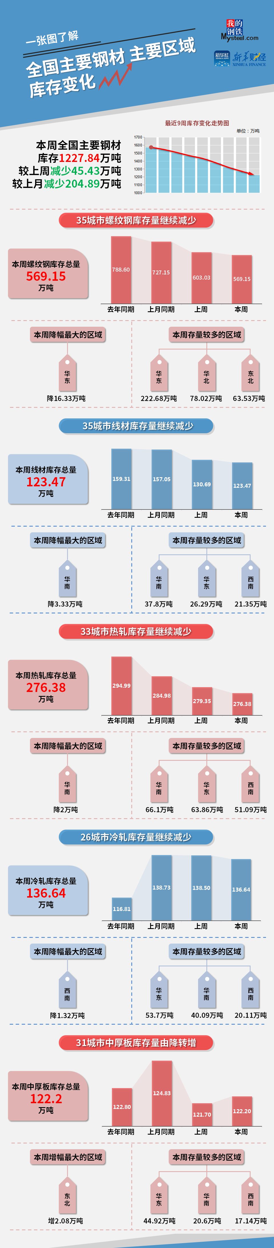 (备注:本文中钢材社会库存总量=35城市螺纹库存+35城市线材库存+33城市热轧库存+23城市冷轧库存+31城市中厚板库存)