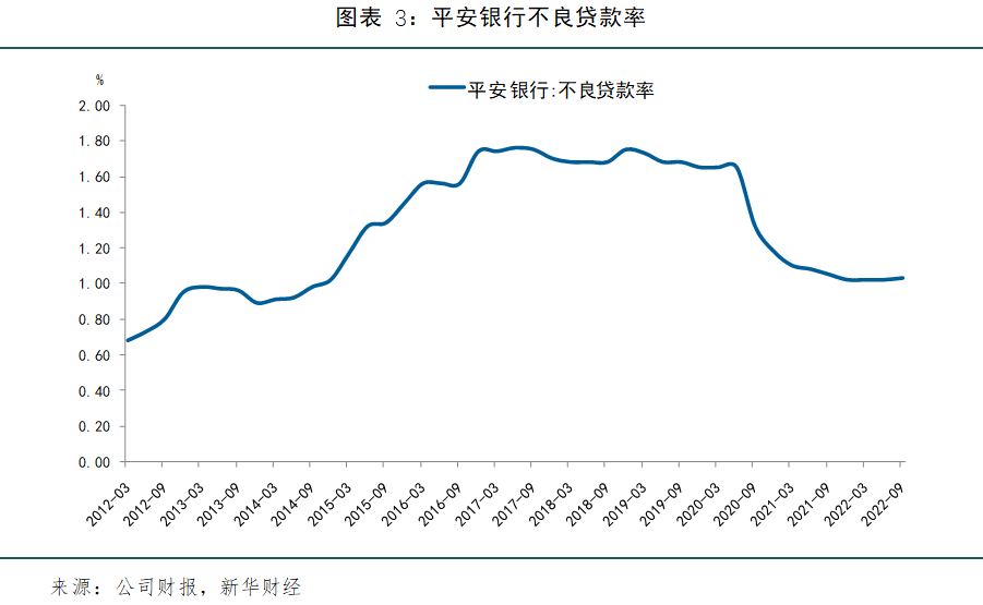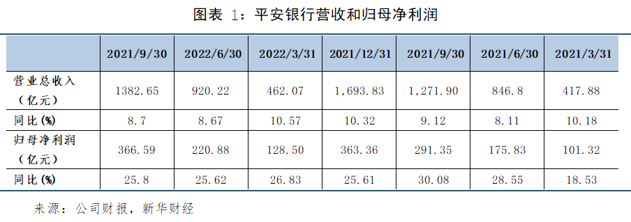 新华财经北京10月27日电(分析师张威 吴丛司 鲁光远)近日,平安银行发布2022年三季报。财报显示,前三季度,平安银行实现营业收入1382.65亿元,同比增长8.7%,实现归母净利润366.59亿元,同比增长25.8%。收入和净利润增速与上半年相当,出现小幅回升。其中,利息净收入有所回暖,息差同比下降幅度缩小,环比企稳回升;非息收入增速继续放缓,手续费及佣金净收入下降幅度扩大;成本端,管理费用保持低增,信用减值损失同比增长0.74%。资产质量方面,不良率等指标小幅上升,保持资产质量总体平稳,风险抵补能力亦保持良好水平。三季度末,平安银行不良贷款率为1.03%,较上年末上升0.01个百分点;拨备覆盖率为290.27%,较上年末上升1.85个百分点。业务经营方面,零售业务总体实现稳健增长,三大零售业务模板经营持续升级;对公业务发挥科技及平台优势,发力两大核心赛道,实现业务平稳增长。