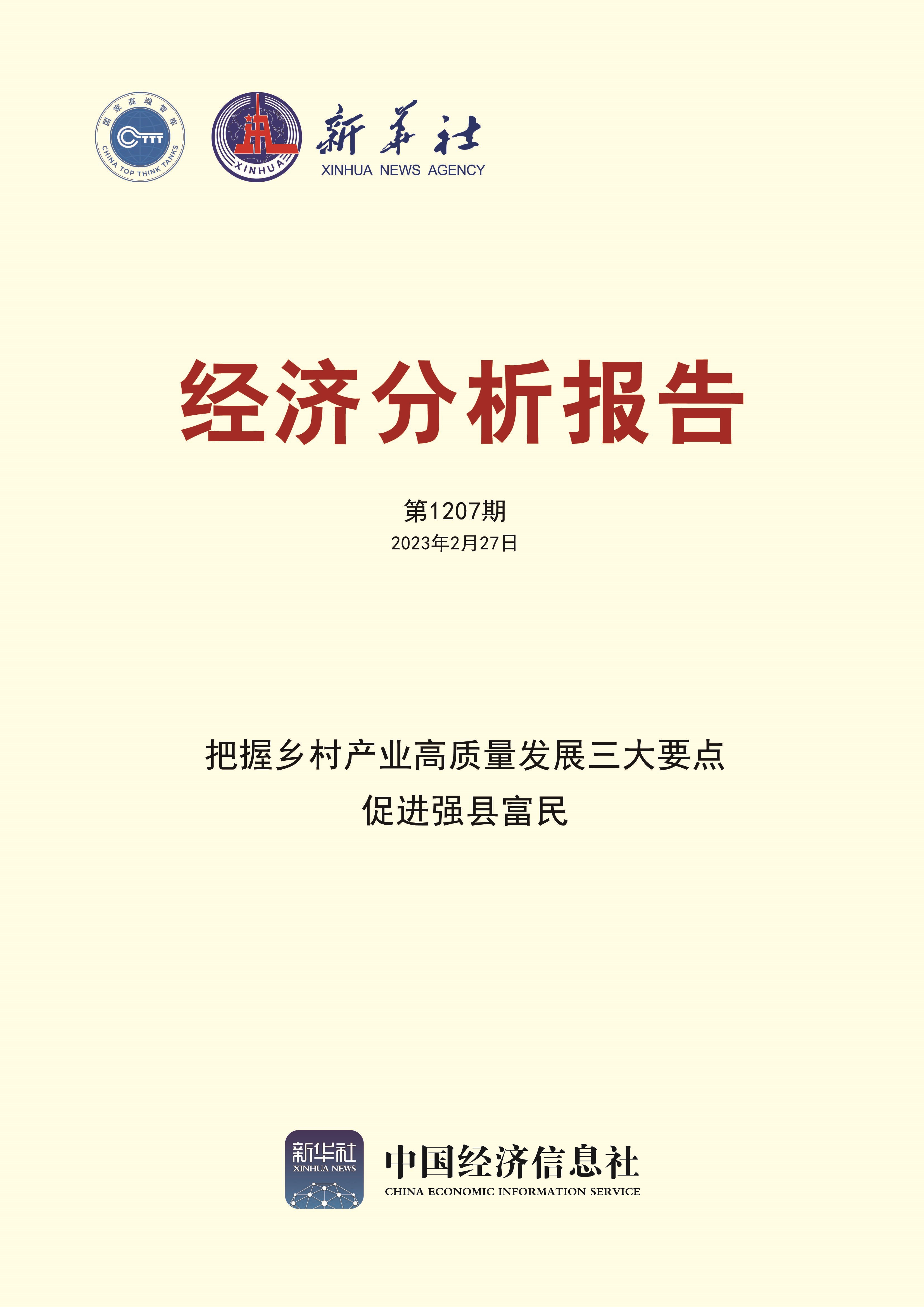 新华财经北京2月28日电 中经智库日前发布智库报告《把握乡村产业高质量发展三大要点促进强县富民》。