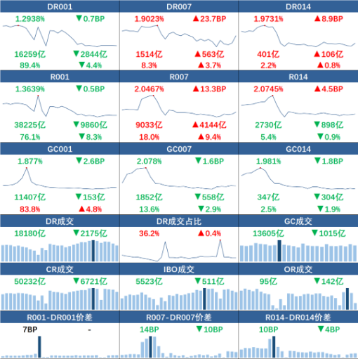 【货币市场日报】跨月资金DR007涨23BP至1.90% R007成交量占比攀升至18%
