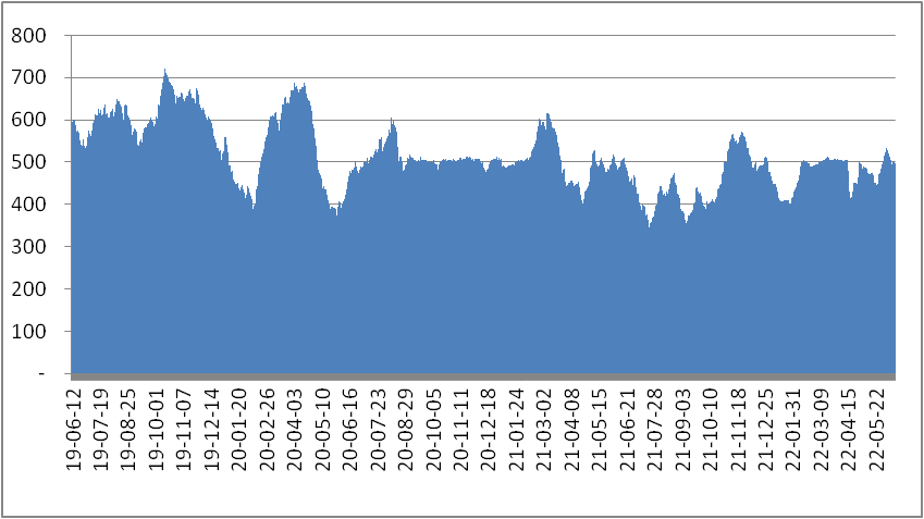 图表:秦皇岛港港口煤炭库存(单位:万吨)