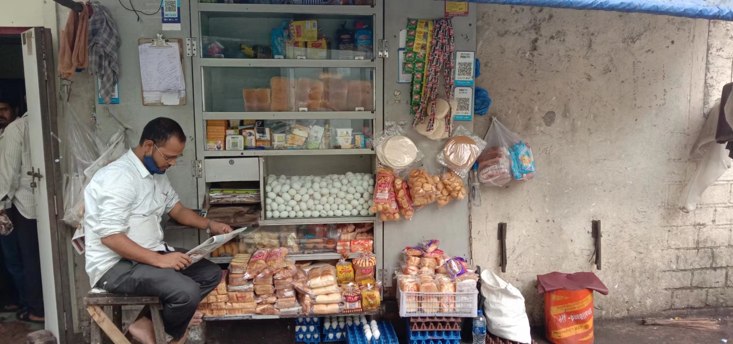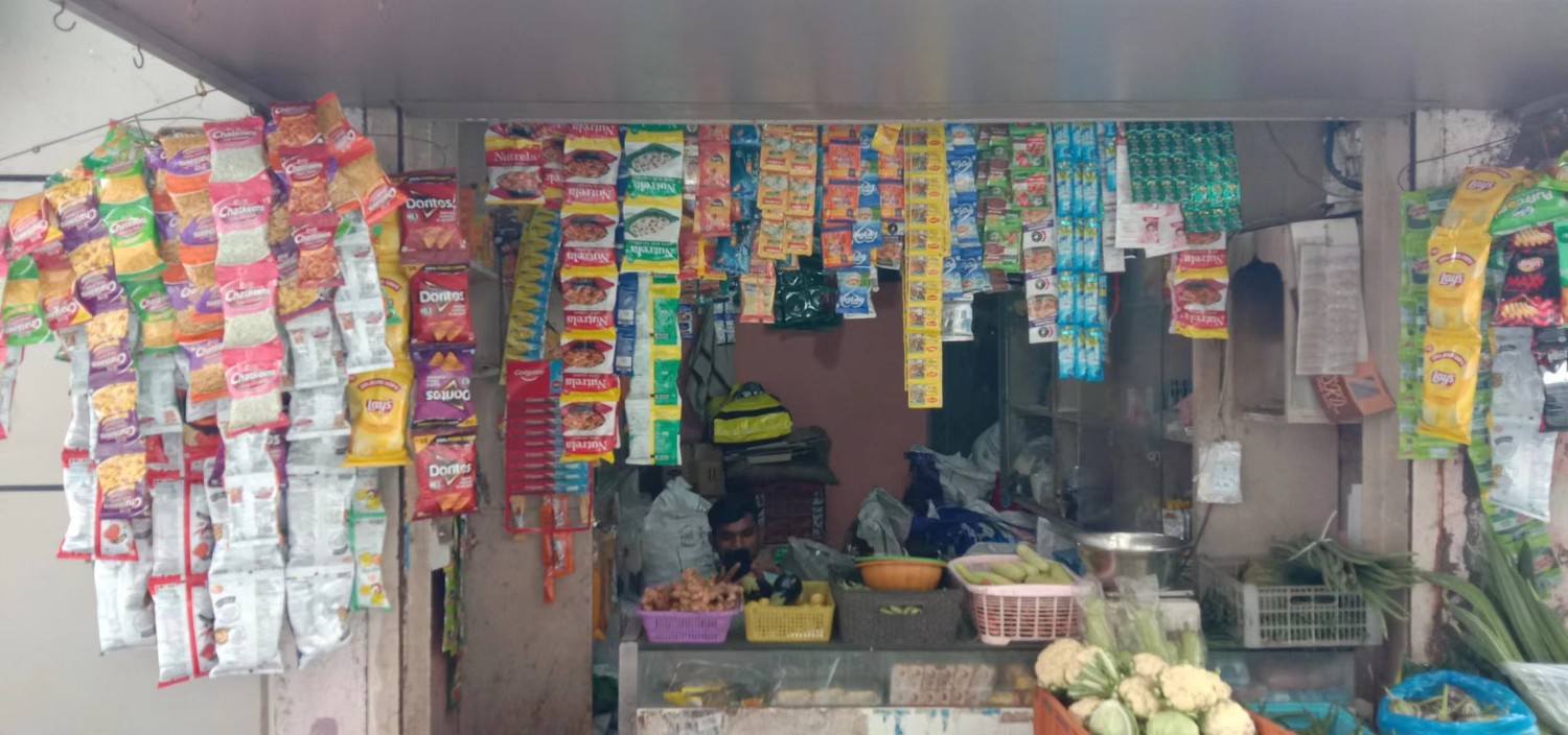 图为南孟买一家卖小零食和蔬菜的路边小店