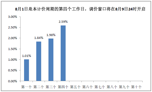 原油:欧佩克与非欧佩产油国在8月初的月度会议上预计维持9月份石油供应配额不变,7月29日国际油价上涨。截至当天收盘,纽约商品交易所9月交货的轻质原油期货价格上涨2.20美元,收于每桶98.62美元,涨幅为2.28%。9月交货的伦敦布伦特原油期货价格上涨2.87美元,收于每桶110.01美元,涨幅为2.68%。