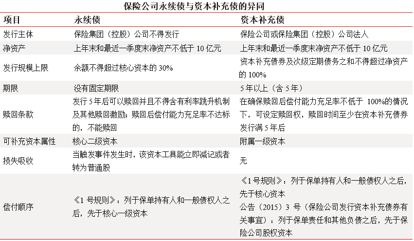 与此前已经可以发行的普通资本补充债券相比,永续债表现出了“限制少,稳定性好”等方面的优势。从发行主体来看,当时的《征求意见稿》已经规定了保险集团(控股)公司不得发行永续债。