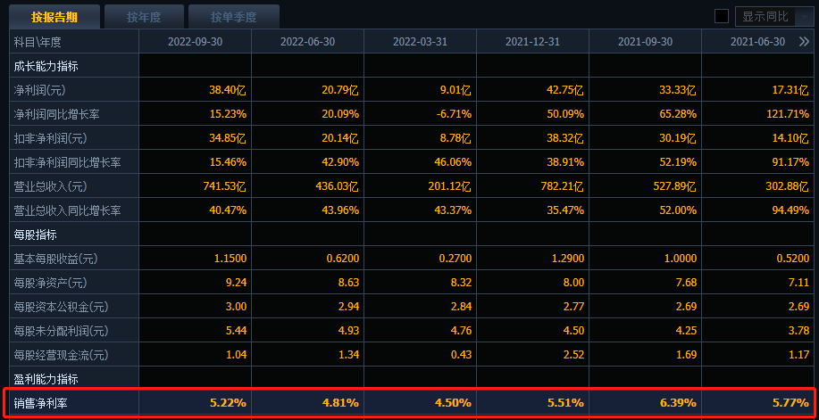 三季报多项关键数据增速下滑 销售净利率较低