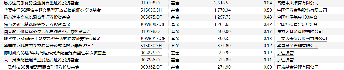 具体来看,三季度持有歌尔股份数量居前十的基金分别为:易方达竞争优势企业、华夏中证5G通信主题ETF、易方达中盘成长混合、易方达研究精选股票、国泰聚信价值优势、银华中证5GETF、华宝中证科技龙头ETF、博时研究优选、太平灵活配置和宝盈科技30混合。其中,易方达竞争优势企业、华夏中证5G通信主题ETF、易方达中盘成长混合、易方达研究精选股票的三季度末持股数量均超过1000万股。不过,上述4只产品中,由易方达基金副总经理冯波管理的3只产品均出现了大幅减仓的动作,三季度分别减仓615万股、388万股和92万股,减仓数量居持股基金的第一、第二和第四位。