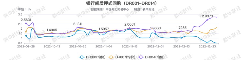 28日资金面整体均衡宽松,银行间质押式回购市场DR001跌破0.5%,续刷新低,R007与DR007走势分化,成交额占比超20%。R014跌至3.9042%。存单一级市场受到缴款日为年末最后一天影响,整体交投较为清淡。