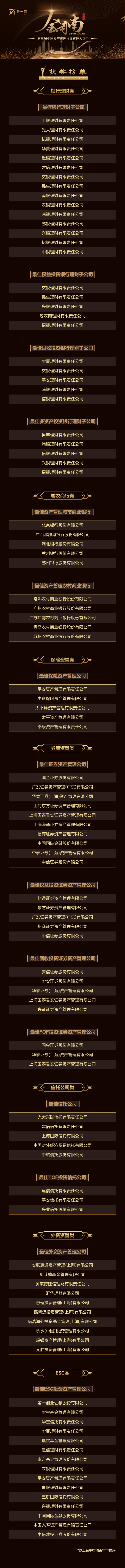同时,保险资管、券商资管、信托公司等固收投资领域、权益投资领域以及FOF/TOF领域等垂直细分类奖项名单也已出炉。