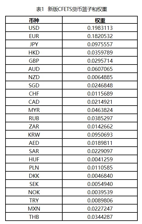 一、调整CFETS人民币汇率指数的货币篮子权重