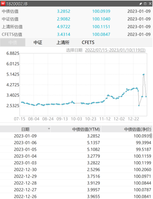 以“18九江银行二级01”这只涉事债券实例来看,2018年2月1日上市发行时,该券发行收益率是5%;2022年12月30日,也就是到期前一个月时,估值降至2.53%,净价100.206元;而2023年1月5日,也就是公告不赎回当天,估值一度飙升至5.11,净价跌至99.52元;最新数据是1月9日,也就是重新公告赎回次日,估值降至3.285%,净价恢复至100.1元。