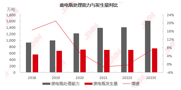 再生铅方面,2022年再生铅(即再生精铅)产量为371.7万吨,同比下滑1.14%。“十三五”期间,国内再生铅行业落后产能陆续淘汰,产业结构优化升级,2020-2022年再生铅新增产能以每年平均百万吨的增幅投放。而在巨大的新增产能投放的同时,国内废料供应增速远不及新增产能,整体再生铅行业利润经历了高—低—亏的转变。2022年,再生铅市场又遭遇了疫情、限电、环保、新增税收政策等因素,即使在新增产能加持下,2022年再生铅产量仍是不增反降。根据调研数据,2023年再生铅新扩建产能仍然有百万吨的量级,新增产能释放程度如何,废料供应主要来源—废电瓶(即废旧铅蓄电池)的供应量尤为关键。根据铅蓄电池产量及电池报废年限理论测算,2023年废电瓶报废量将增加约50万吨,其增幅虽仍是不及再生铅新增产能,但废料供应正增长的条件,或可使再生铅产量增速由负转正。