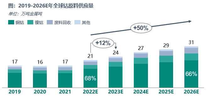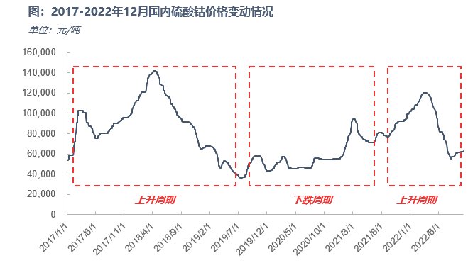 2023年,预计全球钴市场趋势累库,供应仍将大于需求,电解钴价格趋势下行。
