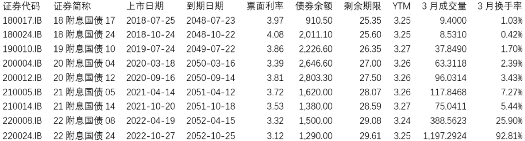 统计数据显示,自1998年第一只30年期国债“98国债2”发行以来,截至2023年3月17日,共有38只30年期国债发行,存量规模31713.27亿元。目前符合交割要求的30年期国债,即剩余期限在25.25年以上,共有9只,其中新券“22附息国债24”目前的流动性最好,3月换手率达到77.64%,是次新券“22附息国债08”的3倍以上。