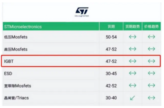具体来看,在2023年第一季度中,意法半导体的IGBT货期为47-52周,美高森美的IGBT 货期为42-52周,艾赛斯的IGBT 货期为50-54周,英飞凌的IGBT 货期为39-50周,仙童半导体的IGBT 货期则为39-52周。