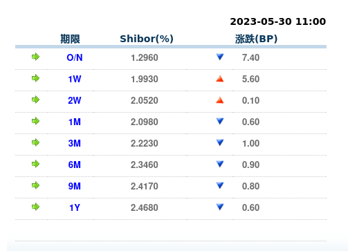 货币市场利率(5月30日)