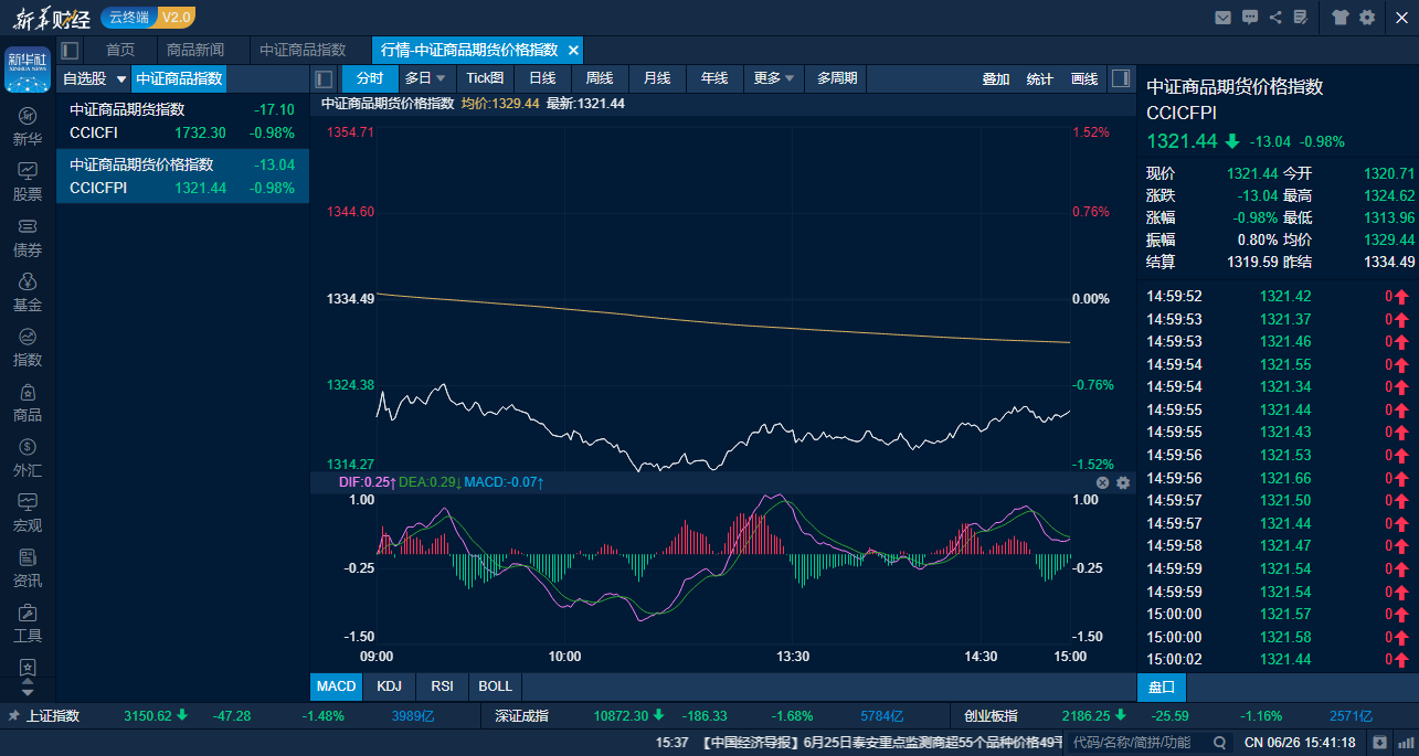中证商品期货价格指数6月26日日内走势图(来源:新华财经专业终端)