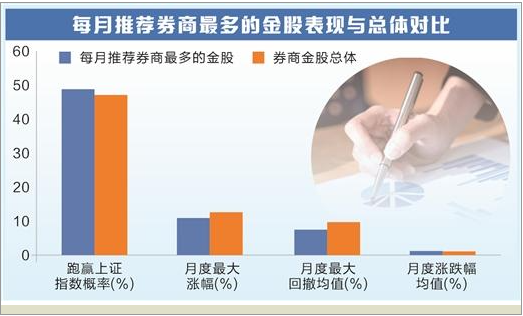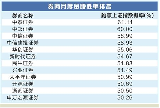 1.37万条金股数据,按券商统计,月度金股跑赢上证指数的概率逾50%的仅12家券商,相当于有77.36%的券商未跑赢上证指数,但也有部分券商展现较强实力。
