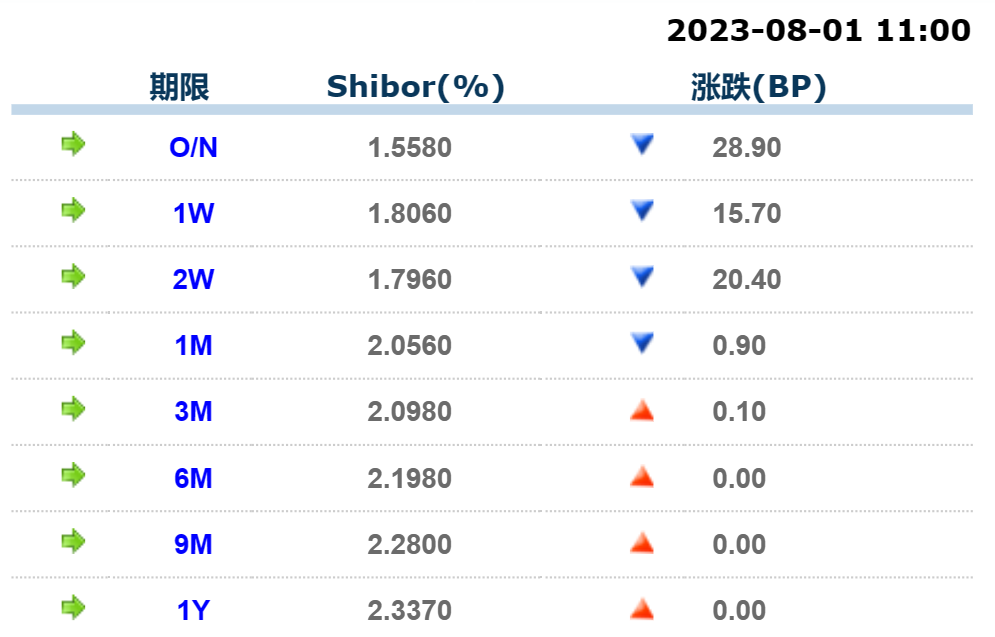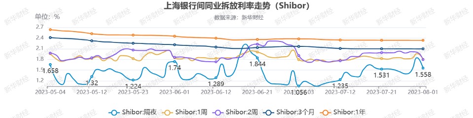 1日,上海银行间同业拆放利率(Shibor)多数品种转跌。具体看,隔夜Shibor下跌28.90BP,报1.5580%;7天Shibor下跌15.70BP,报1.8060%;14天Shibor下跌20.40BP,报1.7960%。