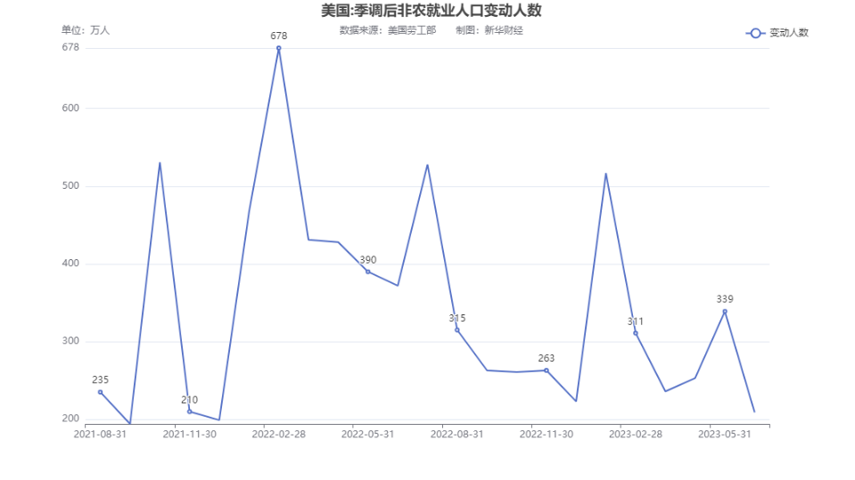 图为美国:季调后非农就业人口变动人数 来源:新华财经