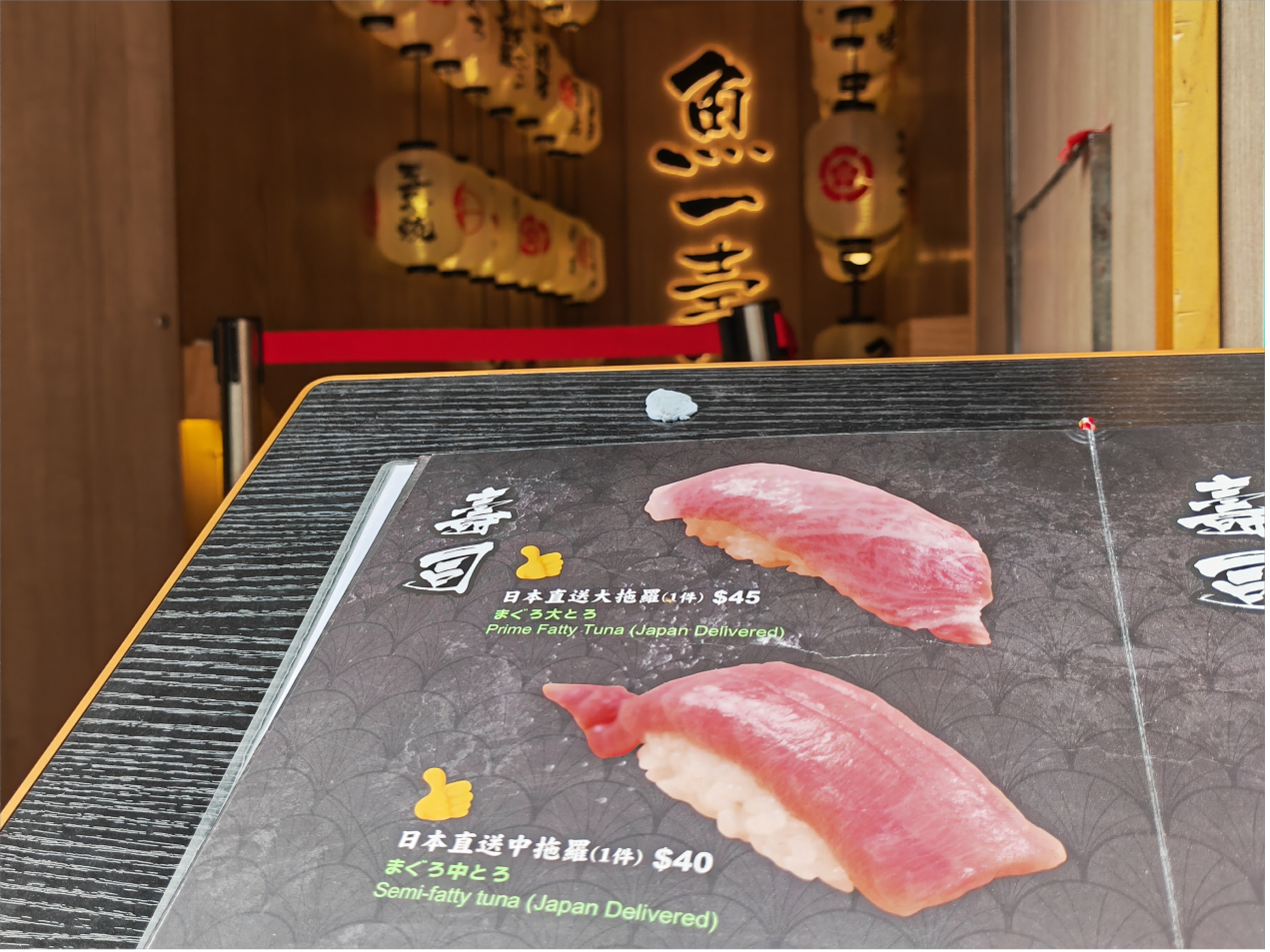 图为香港铜锣湾一家日料店的餐牌