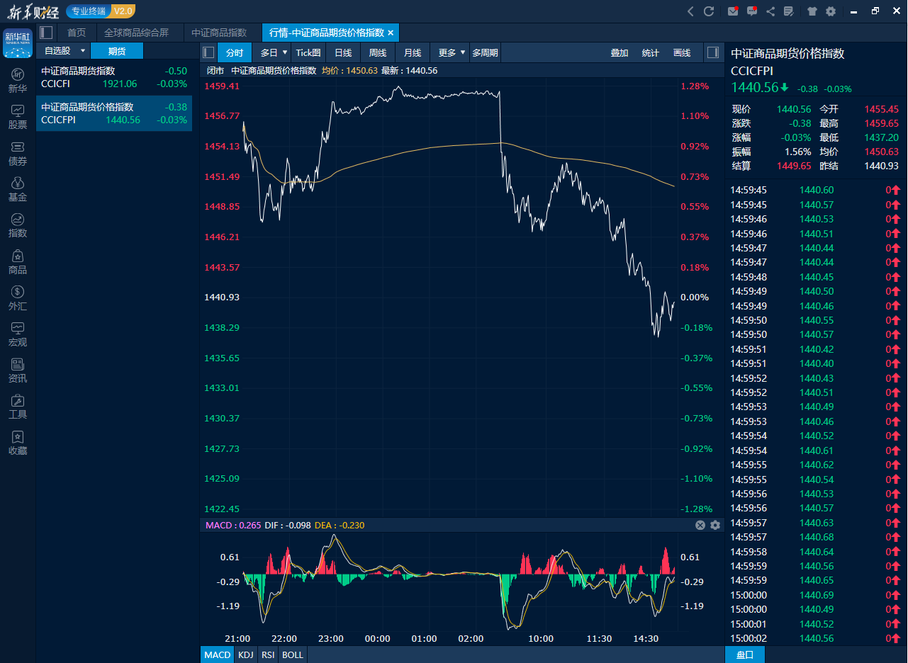 中证商品期货价格指数日内走势图(来源:新华财经专业终端)