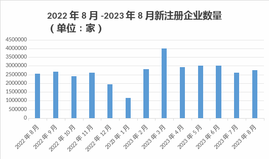 8月份我国新注册企业273.86万家,实现同比环比双增长,表明8月份我国企业活跃度增加,整体经济企稳向好的态势明显。