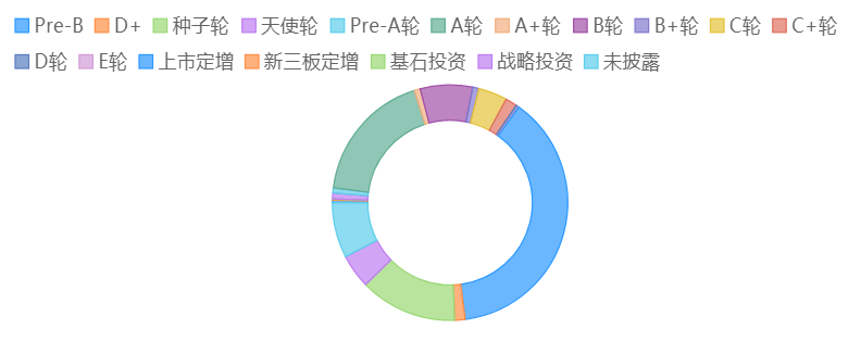 融资轮次方面,从融资规模占比来看,8月全月,国内企业依靠上市定增实现融资370.6亿元,占比53.12%,其次是A轮融资,融资金额176.16亿元,占比25.25%,基石投资130.4亿元,占比18.69%。