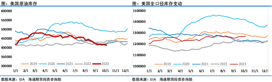 10月4日举办的OPEC+部长级委员会(JMMC)会议没有对现有石油产量政策做出任何建议,而下一次欧佩克+联合部长级监督委员会(JMMC)将于11月26日举行。会议结束后,缺乏新驱动的油价出现连续大幅下挫刷新了1个月来低点。在9月沙特、俄罗斯推出超乎市场预期的自愿减产延长至年底举措将油价重心再抬升一个台阶之后,供应端推升油价的作用也发挥到了极致。10月欧佩克方面没有推出让市场兴奋的举措之后,随着油价冲高做多能量逐渐消耗, 10月油价开始出现大幅回调,显然投资者不再是只关注供应端减产,也开始加大对需求端变化的担忧,原油市场迎来新的阶段。