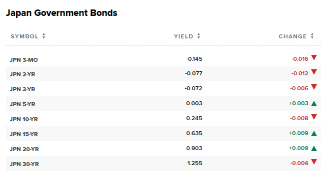 从日本国债市场日内的运行情况来看,10年期日债收益率自上日触及的六年半高位回落,截至尾盘报0.245%,跌落日本央行政策区间上限。上一交易日,10年期日债遭遇大幅抛售,当日盘初大幅上行近6个基点至0.274%,创2015年12月份以来高位。