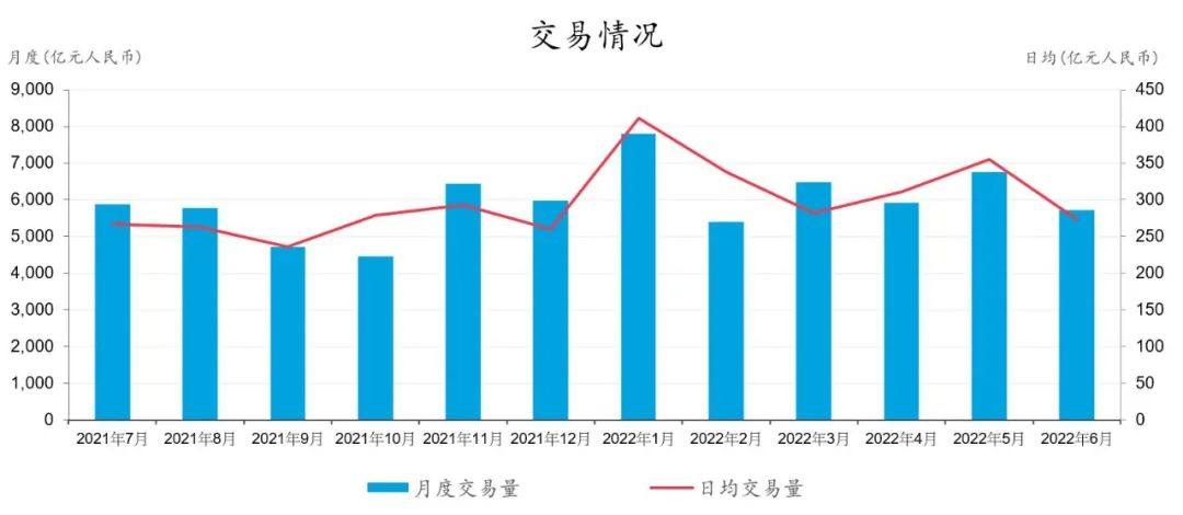 北向通入市及二级成交数据显示,截至6月末,债券通北向通有757家入市投资者,月度交易量为5729亿元人民币,日均交易量273亿元人民币,当月共交易6597笔。