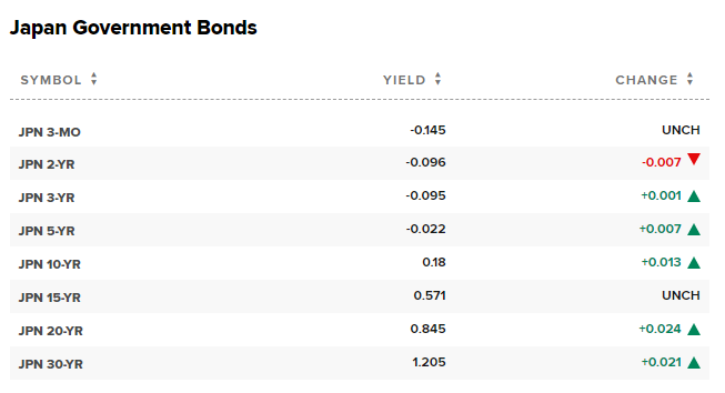 受机构获利了结等因素影响,日债收益率周三(8月3日)普遍上涨,10年期日债收益率上行超1个基点至0.18%,自上日触及的近5个月低位小幅反弹。