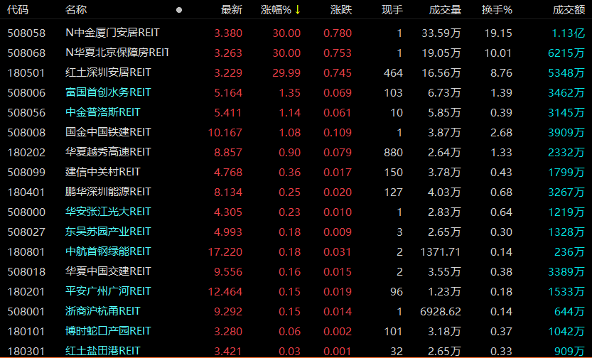 首批3只保障性租赁住房REITs今日在沪深交易所上市,开盘后悉数涨停,涨幅达30%。从发行到上市,热度持续升温,全市场上市公募REITs也已增至17只。