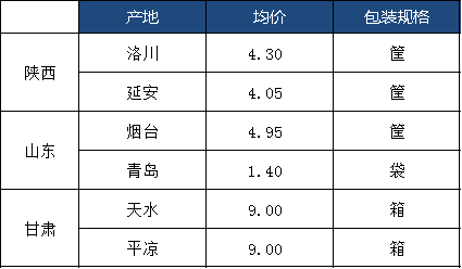 表1 运城产区各规格品均价(2022.11.16-11.22)