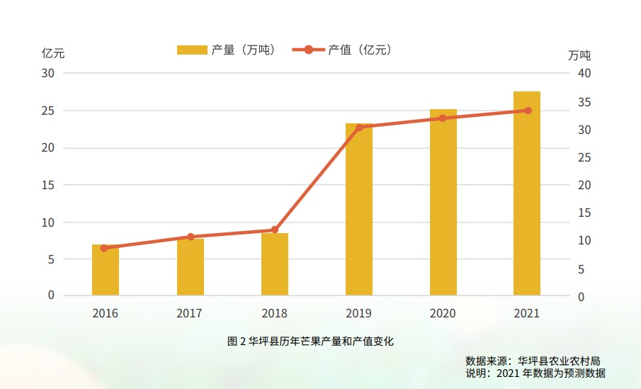 经过50多年发展,华坪芒果已成为当地乡村振兴和农民增收的主导产业。如今,华坪县已发展成为集丽江“金沙芒”优质生产基地、贸易集散中心、信息发布中心和价格形成中心于一身的“中国芒乡”。