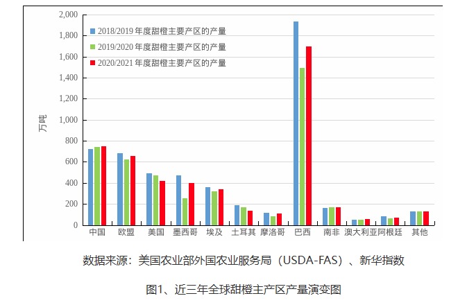 我国是全球甜橙主要生产国之一,产量逐年增加。