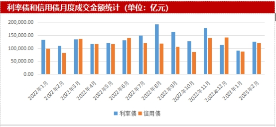 2月,随着银行理财市场转暖、商业银行配置需求上升,债市交投活跃度明显提振,利率债成交金额扭转前两月下降趋势,信用债成交热度显著回暖,其中计算机行业受到资金追捧。