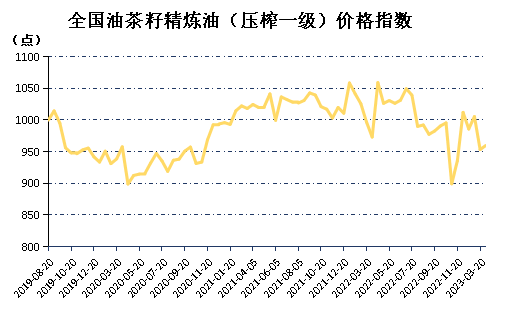 据悉,指数监测油茶籽、精炼油(压榨一级)、油茶粕等多种市场主流交易的油茶产品,样本区域包括湖南、江西、广西、浙江、安徽、广东等全国主要油茶产区。指数结果显示,2020年以来,全国油茶籽精炼油(压榨一级)价格波动上扬,2022年末因物流不畅等原因,产品价格下跌。随着市场消费回暖,当前指数正逐步回升,随着五一劳动节临近,油茶产品市场将迎来短期消费高峰,或将带动指数进一步上行。