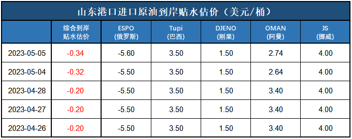 新华财经北京5月6日电(杨猛) 新华指数工业原材料研究中心数据显示,截至2023年5月5日,新华·山东港口·金联创原油价格指数(SPG CIPI)报1172.94点,较前一交易日上涨45.80点,涨幅4.06%;进口原油即期价格为73.76美元/桶,合人民币3671.27元/吨。山东港口进口原油综合到岸贴水估价为-0.34美元/桶,较前一交易日下跌0.02美元/桶,跌幅6.25%。