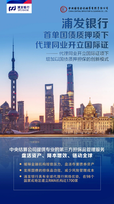 为解决中小城市商业银行授信额度有限的困境,浦发银行创新推出国债质押项下代理同业开立国际证业务模式,引入中央结算公司第三方担保品管理机制,发挥国债“流动性好、风险较低、变现力强”的特点,有效缓释中小金融机构的授信压力,盘活存量资产,优化资产结构。同时,中央结算公司提供的自动选券、逐日盯市、多退少补、自动置换、人工调整等全流程服务,也帮助金融机构降低市场风险和操作风险。