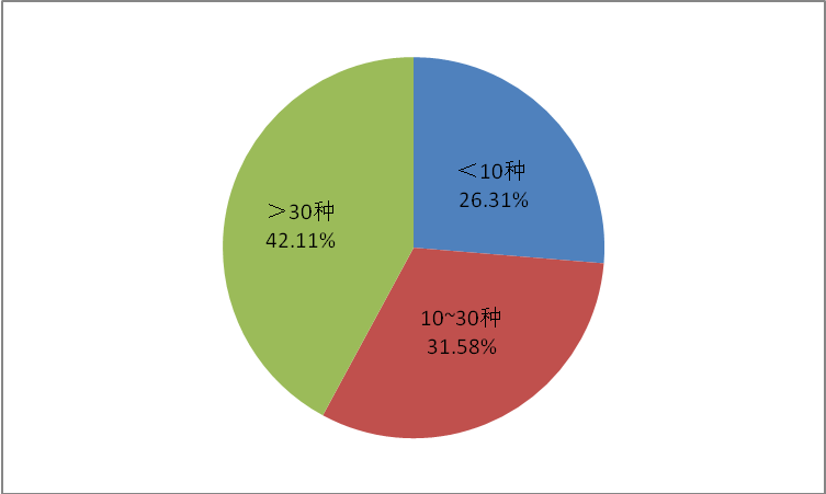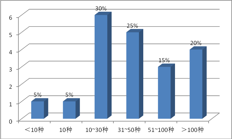 就已策划出版的原创绘本品种数量而言,大多数出版机构在10~100种。其中,30%的出版机构为10~30种,25%的出版机构为31~50种,15%的出版机构为51~100种,20%的出版机构超过100种,品种数量小于或等于10种的出版机构各占5%。