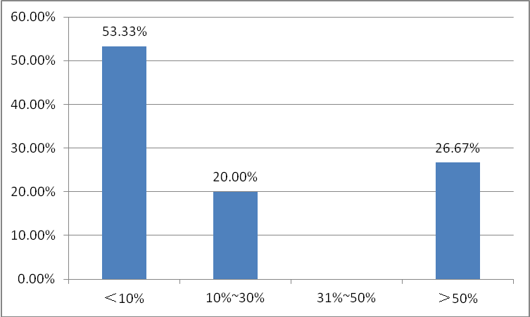 近五年(2018—2022),各家机构原创绘本新书数量快速攀升。但从原创绘本占所有图书品种比例情况来看,超过七成的受访出版机构的原创绘本占所有图书品种的比例不到30%,26.67%的受访出版机构的原创绘本占所有图书品种的比例超过50%。