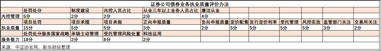 江海证券黄朝阳也对新华财经表示,“从评价办法细则来看,将“执业质量”的分值调为55分,占比超过一半,突出注册制下提高证券公司债券业务执业质量的内涵和要求,评价指标涵盖公司债券业务全链条。”
