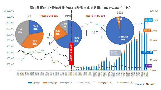 2、权益型REITs VS 抵押型REITs:1972-2022